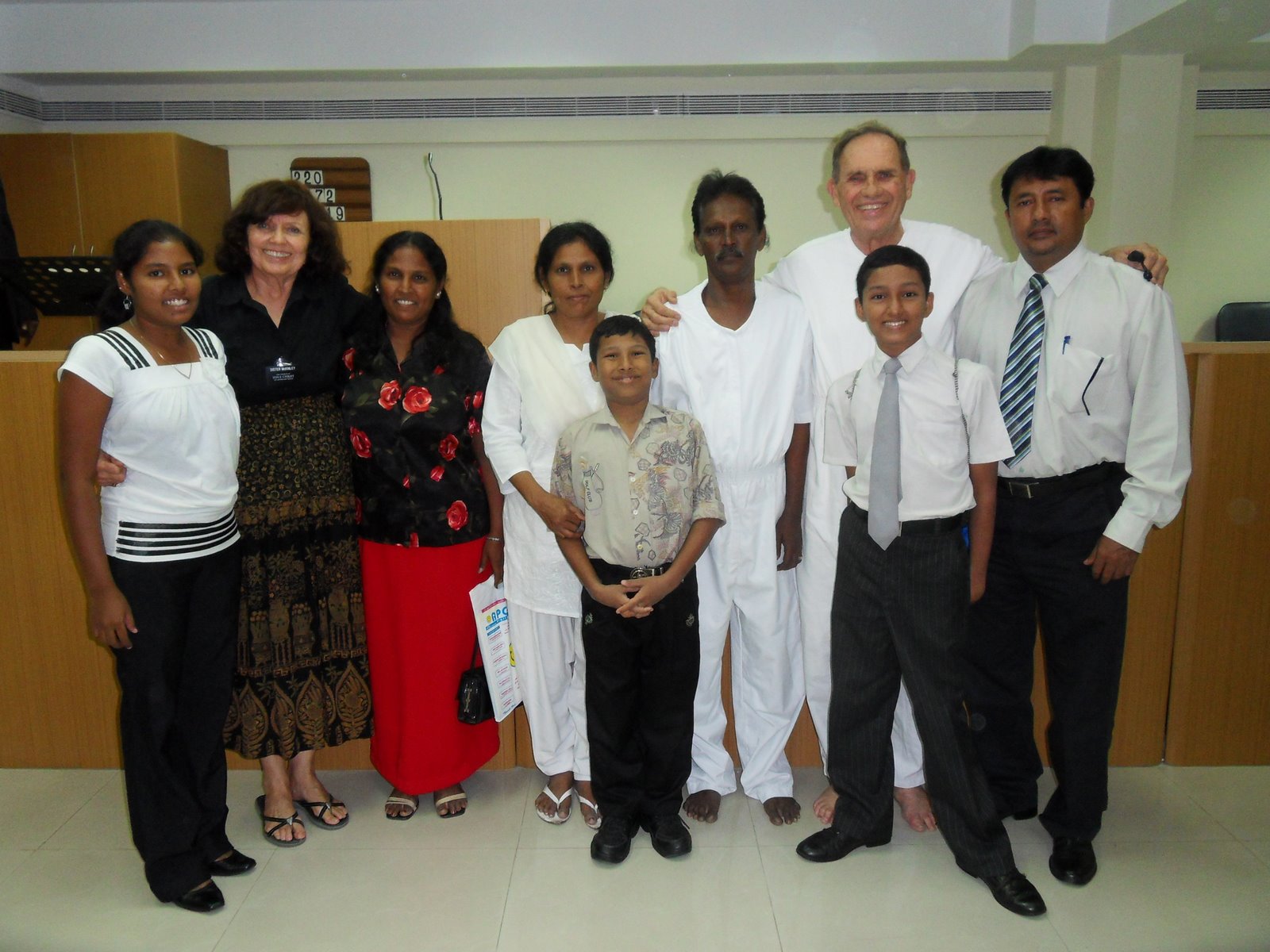 The lady in red and the man on the end were baptized three weeks before this picture was taken. They were introduced to the Church by the lady in white, the two are sisters. The husband in white was not ready and his wife was sad but happy as her sister and brother-in-law and their three children went ahead to take baptisum. Now today the second family is ready. The last lesson in their home started just with the parents, but before it was over Elder McKinley was teaching seventeen people.
